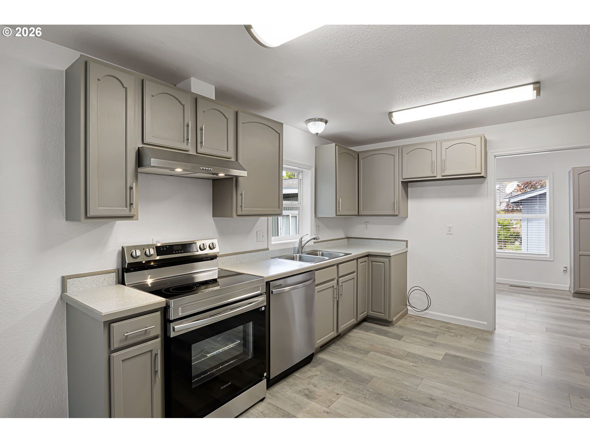 Clean, fully updated, and move-in ready, this Roseburg home delivers practical living with peace of mind. Recent improvements include kitchen and bath updates, new flooring, newer heat pump (2021), water heater (2023), furnace air handler (2023), and fresh interior and exterior paint. Major systems - plumbing, electrical, HVAC, and vinyl windows - have all been addressed over time. Outside, enjoy a covered front porch, large driveway with abundant off-street parking, detached garage, and usable yard space. Functional layout with a spacious utility room and exterior access. Convenient in-town location close to everyday amenities.