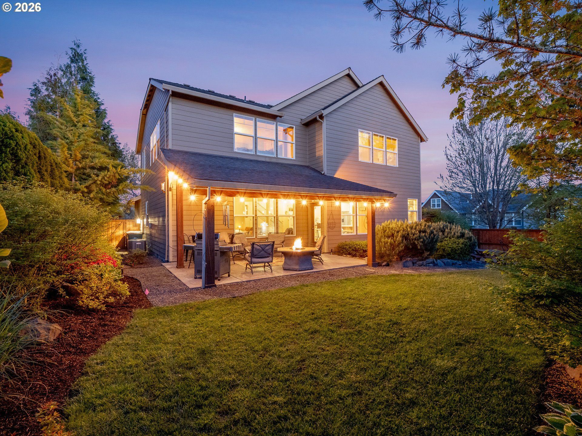 An Entertainer's Delight at Whistler's Ridge! This home welcomes you with a spacious, open foyer that immediately sets a warm and inviting tone. Abundant daylight fills the interior, creating a comfortable & welcoming atmosphere throughout the living areas. The centerpiece of the main living space is a stunning 11-foot stone-wall gas fireplace, offering both elegance & warmth. The kitchen & entertaining features are designed for culinary enthusiasts, equipped with Bosch stainless-steel appliances, a central island & a large built-in Sub-Zero wine refrigerator. This setup provides ample room for meal preparation and hosting gatherings. High ceilings contribute to an expansive area that is ideal for entertaining & dining. The flexible main-level 4th bedroom, accented with French doors & built-in cabinets, offers versatility as a guest room, den, or office, adapting easily to your needs. Upstairs features 10-ft ceilings & a spacious bonus/media room with a built-in entertainment center & an integrated indoor/outdoor sound system, perfect for media & entertainment activities. The large master suite serves as a private retreat, equipped with dual vanities, a soaking tub, a large separate shower & a generous walk-in closet. The additional bedrooms are well-sized & each include ceiling fans. The fenced private backyard includes a covered patio with a natural gas hookup, making it perfect for outdoor grilling. Professionally landscaped grounds feature a water element, a dedicated gardening area with raised beds, a 9-zone sprinkler system, a playground & a picnic area. A three-car garage offers ample parking & storage space. Additional amenities further enhance the functionality and appeal of the home. Situated in a quality neighborhood, the home offers picturesque surroundings & convenient access to Tom Gail Park & the charming downtown area of Newberg. Residents will enjoy proximity to first-class restaurants & wineries. The property benefits from having no HOA fees.