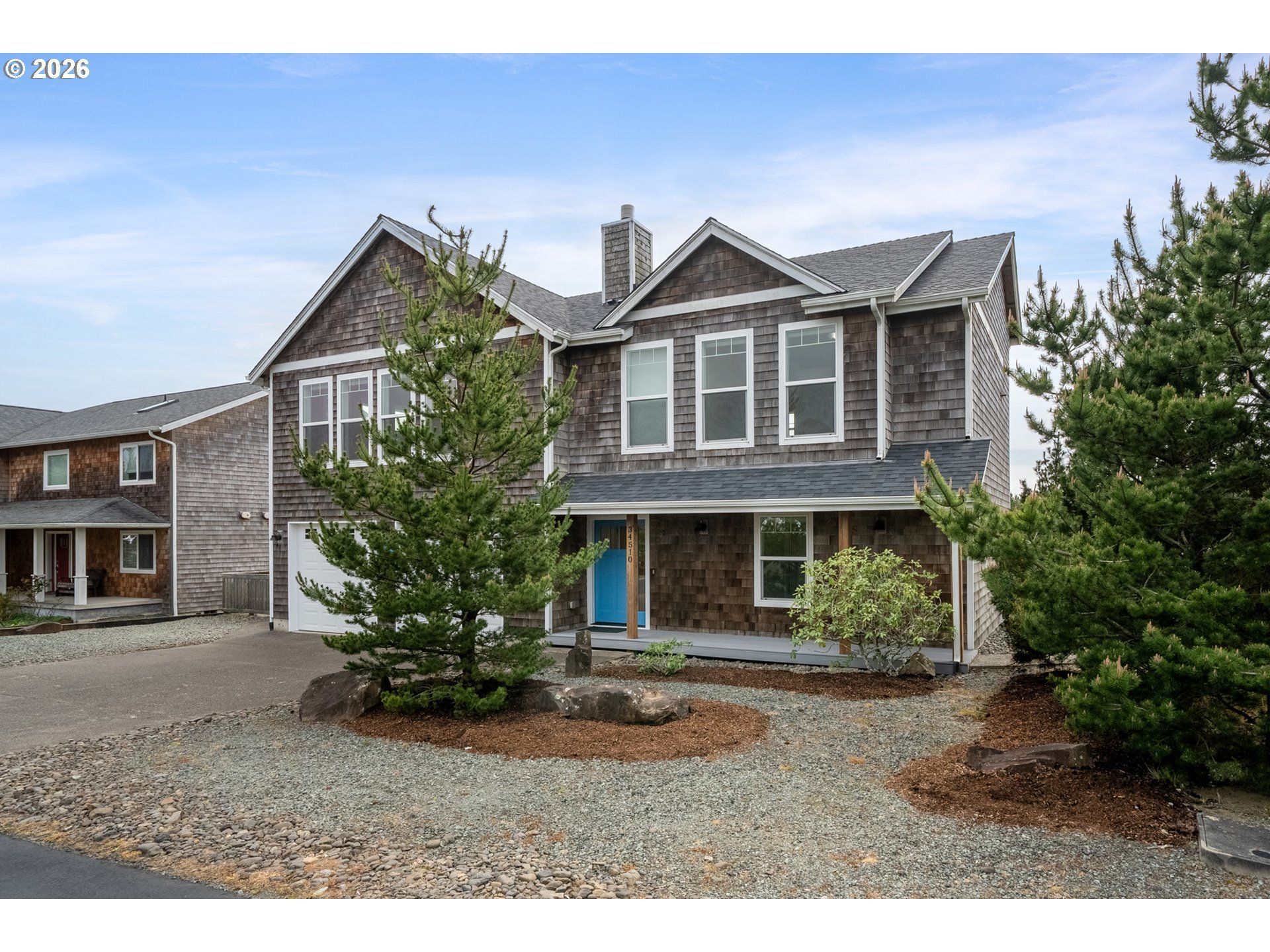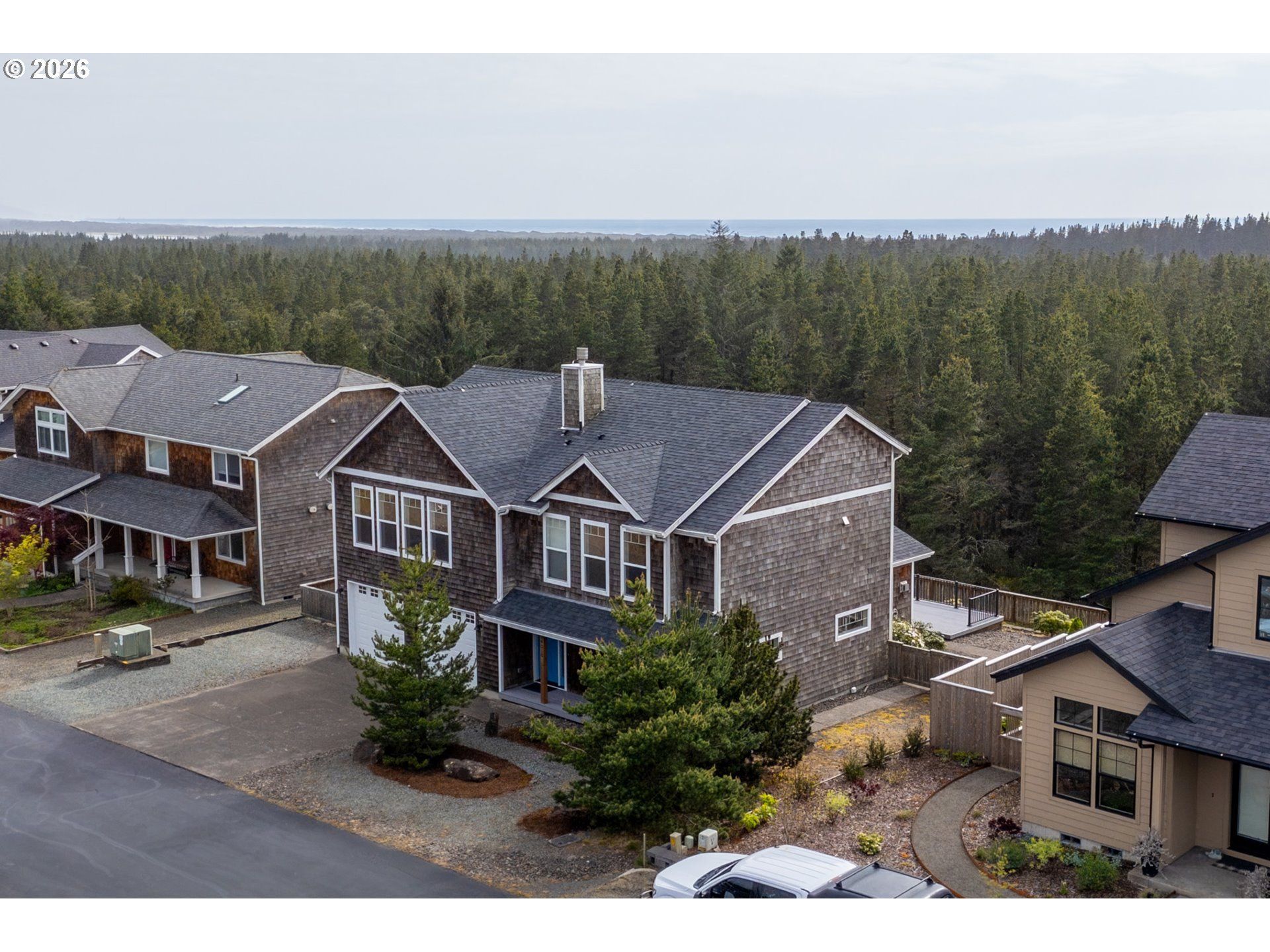 Scenic views and a peaceful natural backdrop sets 34510 Pinyon Drive apart in the sought-after Pine Ridge neighborhood. With the home backing to trees and open space, you get the privacy and quiet that's hard to find. While Manzanita beach, Nehalem Bay State Park, and the golf course are all just minutes from your door. Inside, the open floor plan feels warm and welcoming, with vaulted ceilings, engineered hardwood, granite countertops and stainless steel appliances. Natural light pours in throughout the day, making the space feel bright and alive in every season. Dual primary suites - one upstairs, one down - make it easy to host family and friends while everyone still has their own comfortable retreat. Whether you're looking for a full-time residence or a coastal getaway, this is a home that delivers the view, the nature & the lifestyle.