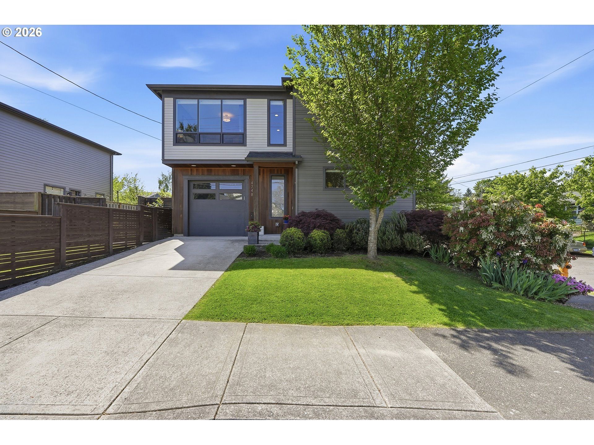 Crafted by award winning Renaissance Homes, this contemporary beauty with eye-catching cedar accents is LEED Certified with a perfect 10 HES & 99 Bike Score giving you environmental bragging rights. Set on a dreamy corner lot & intentionally designed to capture a wow-worthy abundance of natural light while preserving a rare sense of privacy. The open concept main level incorporates high ceilings, engineered hardwoods & equally supports everyday living or elevated entertaining with an atmosphere that soothes. The kitchen offers both beauty and brains with an on-trend dramatic Dekton continuous backsplash, quartz counters with eating bar, pantry, multiple Bosch premium appliances, & multiple smart enabled appliances, blending innovation with design. A large pantry and downstairs roomy coat closet all add to the easy living. Upstairs is a rare find - floor to ceiling windows for even more natural light. The generously sized primary suite provides a calming aesthetic & features double sinks, a roomy tiled walk-in rainhead shower with contrasting accents & walk-in closet with built-ins. The cherry on top? A yard you can use! Brimming with established plantings the fully fenced multi-zone yard maximizes every square inch and is designed with options for both rejuvenation & play using sleek French door gates. Sure to become a favorite spot, the backyard patio with wisteria draped pergola creates a tranquil backdrop for al fresco dining or relaxed evenings inviting you to linger. Additional highlights include tankless water heater, 95% gas furnace, Central A/C, upstairs laundry with built-ins, sprinklers, outdoor gas hookup, & Ring doorbell. Superb Portsmouth location within easy reach of multiple food cart pods, New Seasons, Kenton, U of P, & St. John's. Short stroll to 35 acre Columbia Park/ Annex for nature, sports & community engagement. The $91 million state of the art NoPo Aquatic Center breaking ground in '27 will add to the neighborhood appeal. [Home Energy Score = 10. HES Report at https://rpt.greenbuildingregistry.com/hes/OR10023299]