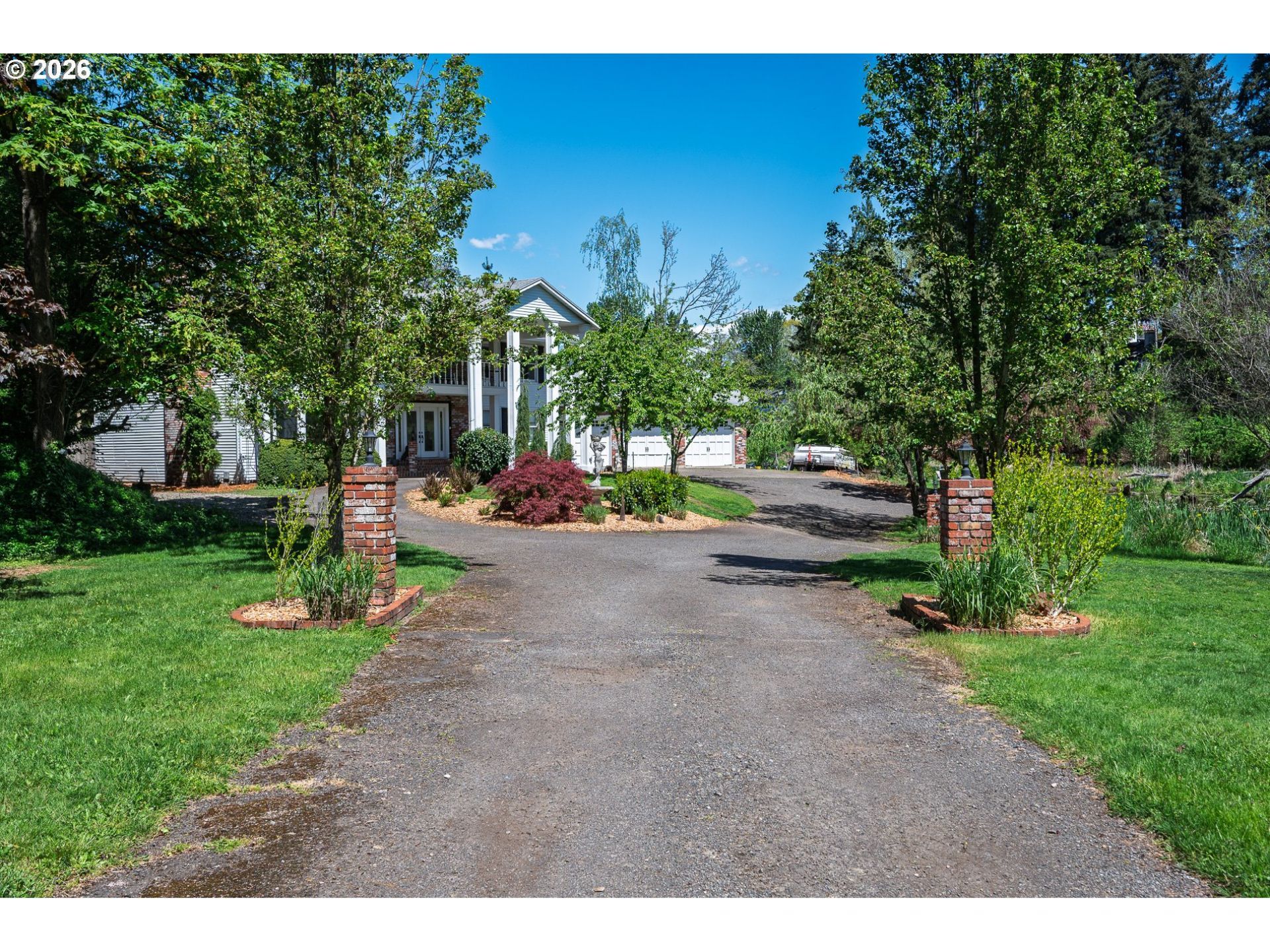 Unique acreage property with a private gated entrance leading into a natural wildlife park setting along Kellogg Creek. Grand Colonial home sits on 1.55 acres with a wrap-around driveway, plenty of parking for all vehicles, RVs, boats, etc., room for a garden, a small orchard in the backyard, a large private deck setting, and a fenced backyard. Grand entrance into the foyer features a staircase leading upstairs and can be converted into a natural water feature if desired. The home includes a main-floor den, a large family room, a formal dining room, a remodeled kitchen, a second living space/media room, & 3 car garage w/ newer furnace, water heater, AC and electrical panel. Upstairs living space includes a main door to the front deck overlooking the natural park setting. The very large primary bedroom features a wood fireplace and an open, updated, and remodeled bathroom concept, including walk-in closets and more. The laundry room is on the second floor with the other 3 bedrooms. Property owns creek to other side, island is included and can do what you want with it (e.g., putting green). See private remarks for more information.