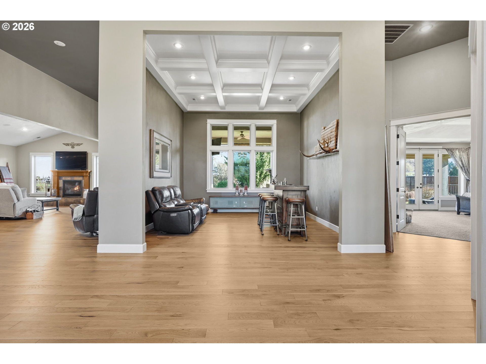 Experience the pinnacle of refined country living with this extraordinary custom-built 2007 daylight ranch estate set on 11.45 private, picturesque acres in Junction City-an exceptional luxury equestrian retreat designed for both elegant living and premier horse stewardship. Stunning single-level residence features soaring vaulted and high ceilings, paired with expansive windows, bathe the home in natural light while showcasing the surrounding pastoral beauty. Rich hickory heritage hardwood floors, plush carpeting, slate tile, and exquisite marble finishes create a warm yet sophisticated ambiance throughout.At the heart of the home, the gourmet chef's kitchen impresses with stainless steel gas built-in appliances, double ovens, quartz countertops, an island with prep sink, and instant hot water-flowing seamlessly into the inviting great room anchored by a cozy gas fireplace. Entertain effortlessly in the formal dining room or gather around the elegant bar area featuring a striking coffered ceiling. The private owner's suite is a true sanctuary, complete with a tray ceiling, French doors leading to the covered patio, dual walk-in closets, and a spa-inspired bath showcasing double vanities, marble countertops, heated marble floors, and an oversized tiled shower with multiple shower heads.Designed with both comfort and function in mind, the home also offers generously sized secondary bedrooms with double closets, two laundry areas-including a full laundry room with sink and storage-and a secured room ideal for valuables or equipment. Outdoors, indulge in resort-style living with a covered patio, gas fireplace, built-in firepit with decorative pavers, and a hot tub-perfect for year-round enjoyment in a serene setting.Equestrian excellence defines this property. Thoughtfully equipped for the discerning horse enthusiast, the estate features a premium indoor riding arena, a well-appointed luxury barn, and expansive grounds ideal for training, turnout, & riding.